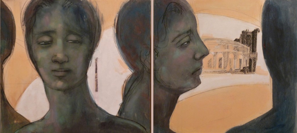 150x 150×250 totale – olio e matita grassa su tavola