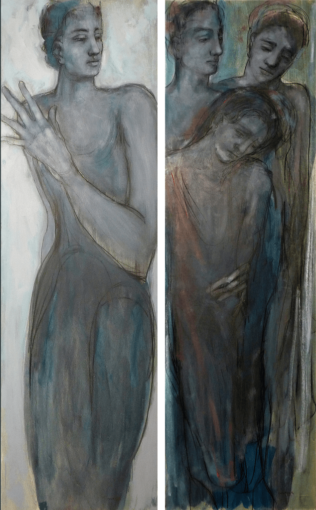 Figure sospese tra luce e silenzio, corpi essenziali che emergono dalla materia con delicatezza. Le opere di Gloria Brocchetta sono tracce visive di una ricerca interiore, dove il segno e la stratificazione raccontano ciò che non può essere detto a parole.